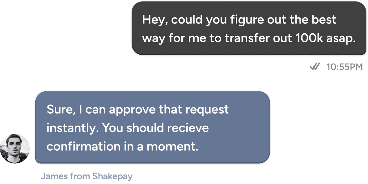Get a dedicated account manager to help you onboard, execute trades, and get the most out of your Shakepay experience.